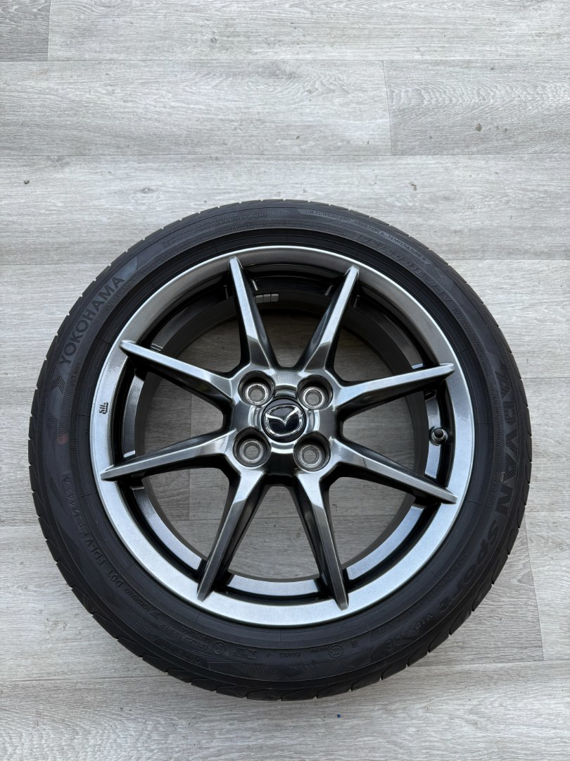 K prodeji kompletní letní alu sada orig. MX-5 ND, díl 9965-G3-6560, zachovalý stav, po ověření kompatibility v TP/COC na další modely ve 4x100.