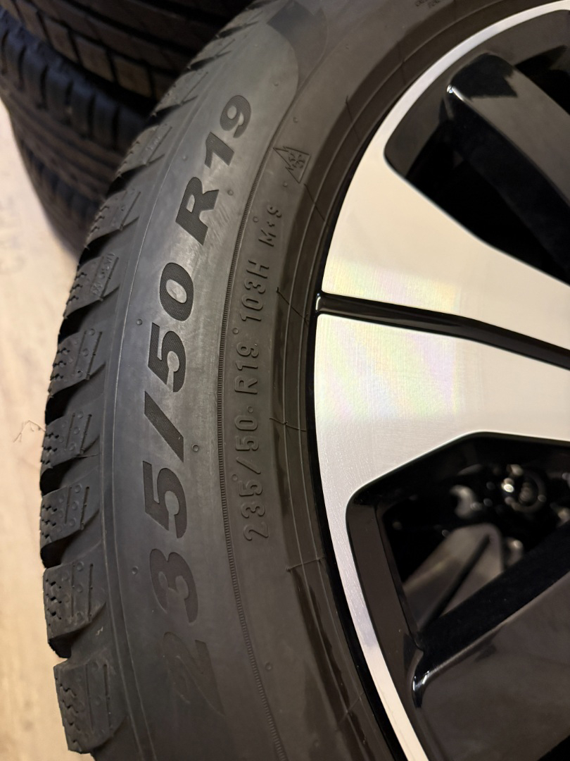 Pneu: Zimní přední 235/50/19/103H DOT24 - vzorek 99% , zadní 255/45/19/104H DOT23 - vzorek 95%.
